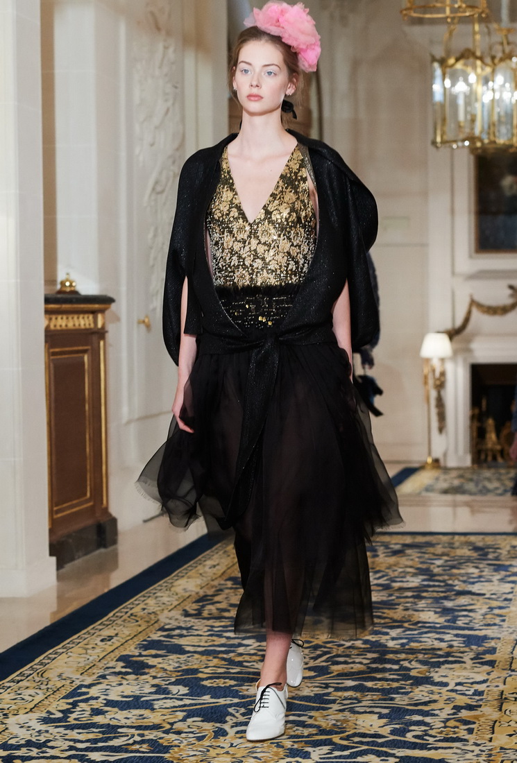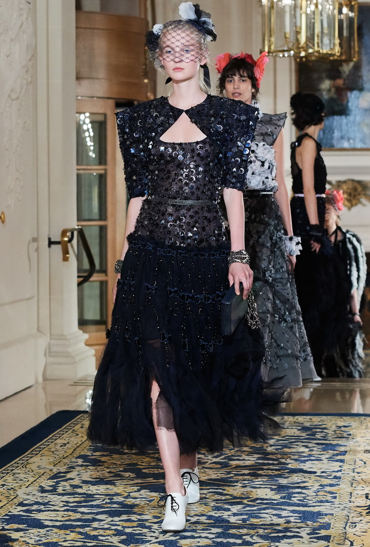 Malgré son âge considérable, Karl Lagerfeld ne perd pas sa capacité de travail et ravit les fans de Chanel avec de nouveaux looks. La collection comprend des vestes Chanel mises à jour, complétées par des jupes midi, des culottes ou des pantalons, des robes argentées claires avec des cardigans et des foulards doux, des robes de soirée avec des franges, des strass, des fleurs et de la fourrure.