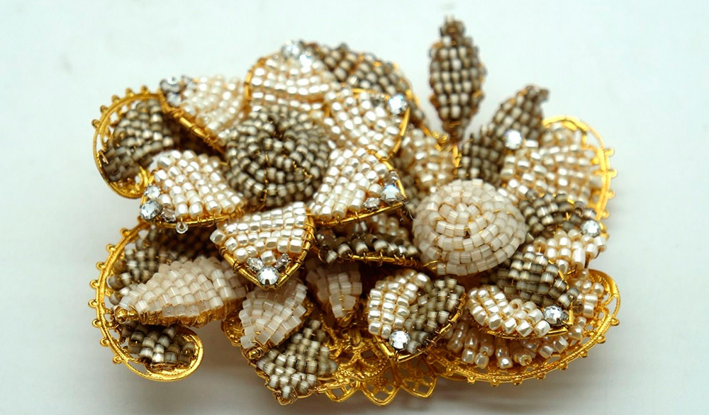 Par conséquent, nous allons maintenant nous arrêter pour admirer des broches d'une beauté étonnante faites de perles et de perles.