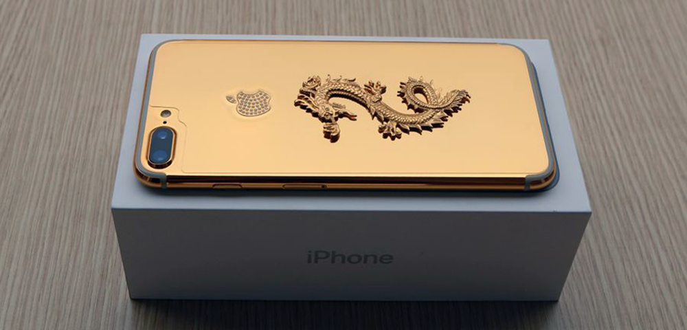 iPhone 7 Plus dans un étui plaqué or comme cadeau pour le Nouvel An