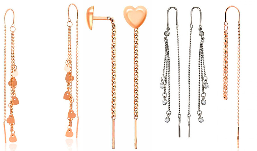 Ce fermoir est destiné aux boucles d'oreilles légères et délicates, elles sont faciles à enlever et à mettre. Les boucles d'oreilles sont appelées ainsi - boucles d'oreilles à cordes. Le fermoir se compose d'un arc et d'une chaîne attachée à celui-ci. L'arc est enfilé dans le lobe, puis une chaîne est derrière. En raison de la longueur du fermoir, les boucles d'oreilles sont fermement maintenues dans les oreilles, elles ne se déforment pas, car elles n'ont pas une forme rigide. On peut dire que le seul point négatif est que les boucles d'oreilles string peuvent s'accrocher aux cheveux.
