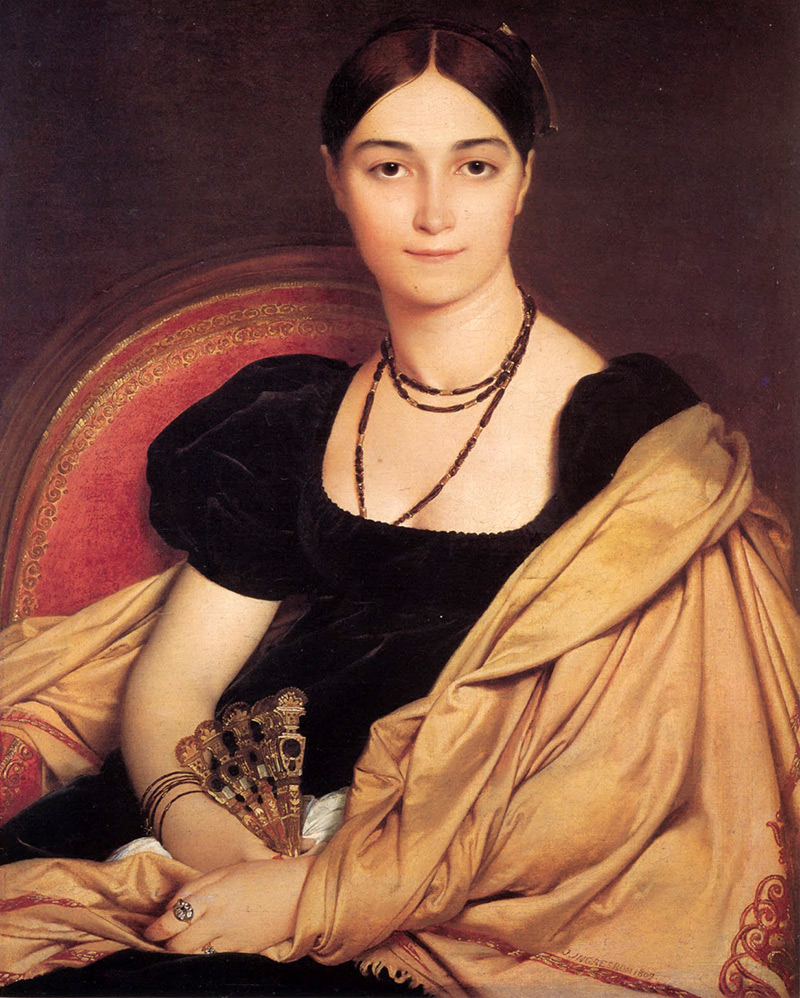 Portrait de Madame Tournon, 1812Les gants longs sont souvent portés avec des robes de style Empire. Sur le cou - un collier de perles ou de petites perles.