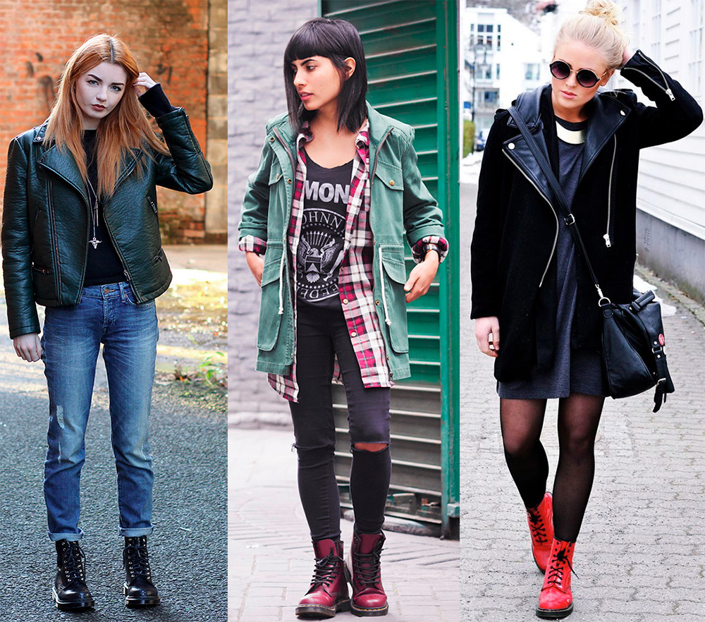 Dans le même temps, les femmes ont également prêté attention au Dr. Martens, et a décidé pourquoi ne pas compléter le look avec la robe bandage moulante d'Azzedine Alaya avec des bottes militaires. Les chaussures ont commencé à changer de couleur, des lacets de couleur y ont été enfilés.