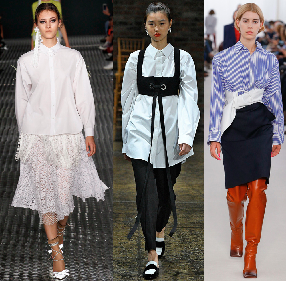 Les Copains, Stella McCartney, Ralph Lauren Chemises oversize. La même chemise dans ce style peut être présentée de différentes manières, en se combinant avec d'autres vêtements ou même en l'utilisant comme option autonome. Vous pouvez porter une chemise à l'extérieur ou rentrée dans un pantalon (jupe). Les manches longues peuvent être abaissées ou retroussées.