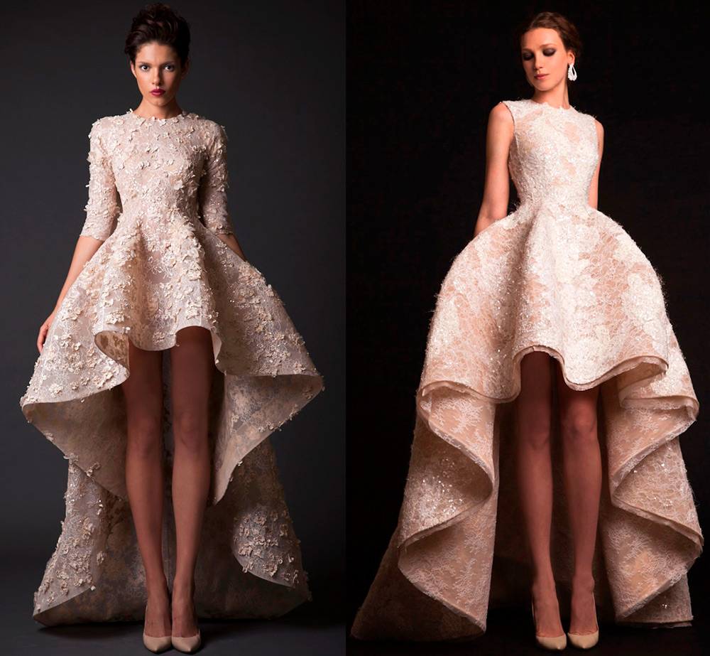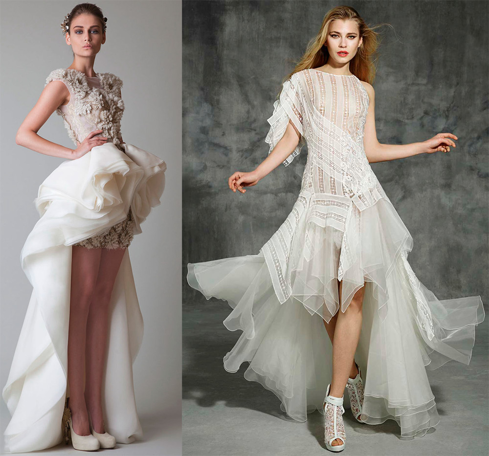Au-delà, soyez réaliste quant à votre silhouette et la longueur de l'ourlet avant. Pour les filles minces, vous pouvez acheter une robe de mariée courte, et pour les propriétaires de formes tout en courbes, il est préférable de choisir un modèle avec une jupe plus longue. Le style du mulet attirera l'attention des invités et de leur entourage, vous devez donc vous sentir en confiance lorsque vous vous retrouvez au centre de l'attention dans une telle tenue lors de votre mariage.