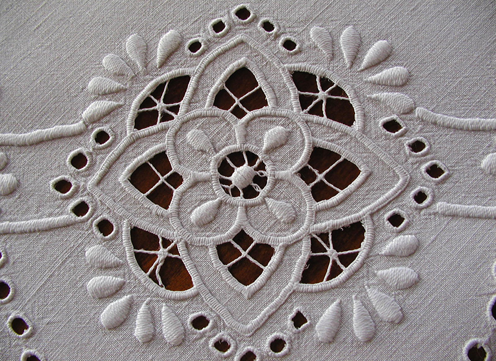 La broderie cutwork se subdivise en broderies avec mariées et sans mariées, réalisées à la main ou à la machine. Quel que soit le type de broderie ajourée réalisée, cela demandait de la patience, des compétences et beaucoup de temps. Mais les résultats en valaient la peine.