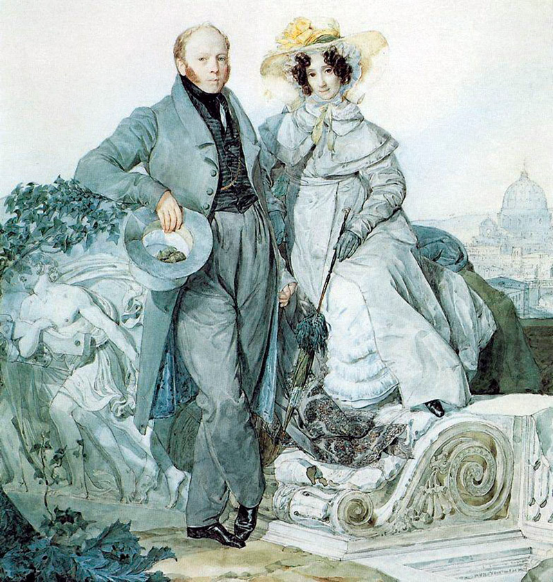 Portrait de G. N. et V. A. Olenin. 1827Outre le Moyen Âge, l'Orient présente un intérêt.Le XIXe siècle est l'époque des empires coloniaux. L'Angleterre et la France avaient leurs colonies dans les pays de l'Est. Dans le costume, l'enthousiasme pour l'Orient se reflétera à la fois dans les motifs à motifs orientaux et dans l'apparition d'un type de vêtement de maison pour hommes tel qu'une robe de chambre.