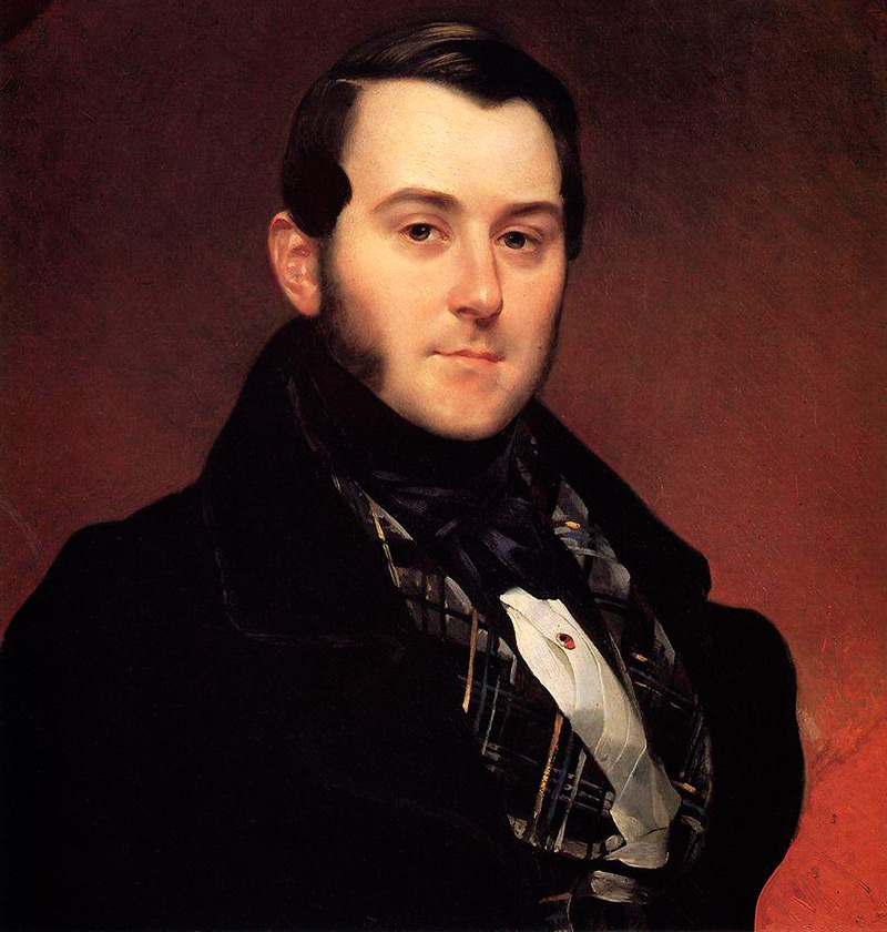 Autoportrait, 1837Quant au costume masculin de la période romantique en général, il n'a pas subi de changements aussi importants que le costume féminin. Les hommes portent encore des pantalons-pantalons légers et un gilet, un frac ou une redingote de nuances plus foncées sur le dessus. Et une variété de manteaux. L'un des plus populaires était le manteau carrick, un manteau à plusieurs cols.