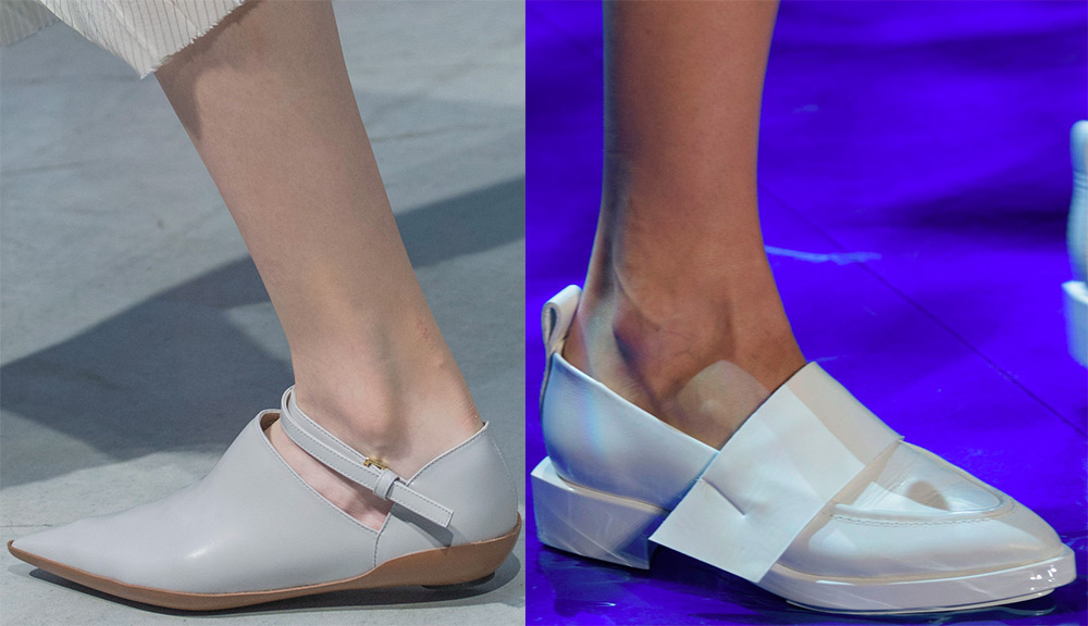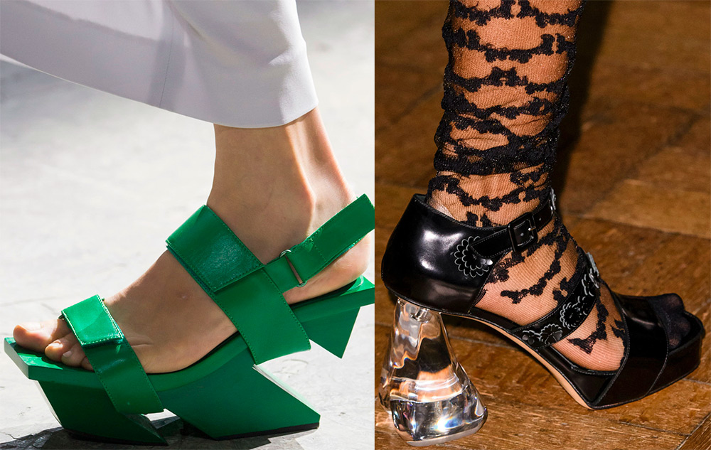 Les couleurs néon saturées lumineuses, la brillance métallique, chatoyante dans différentes nuances, sont également incluses dans les principales tendances de la chaussure. Vous trouverez de nombreux modèles intéressants de Laura Biagiotti, Kenzo, Trussardi, Masha Ma et de nombreux autres créateurs.