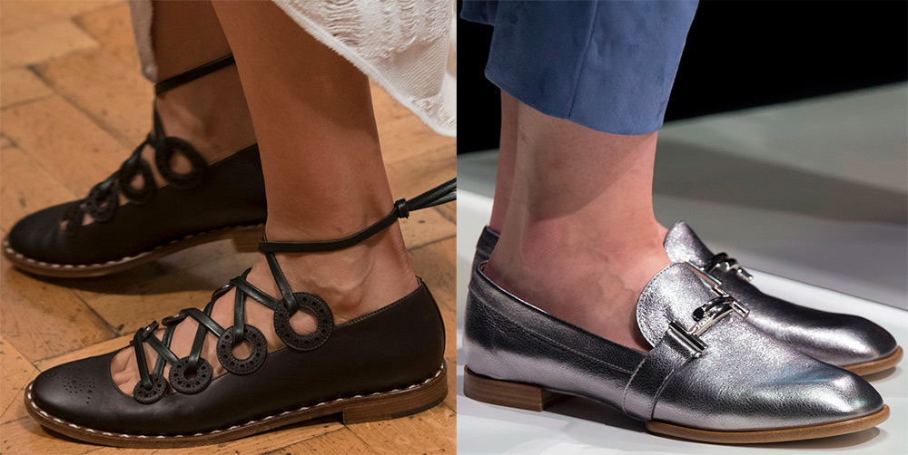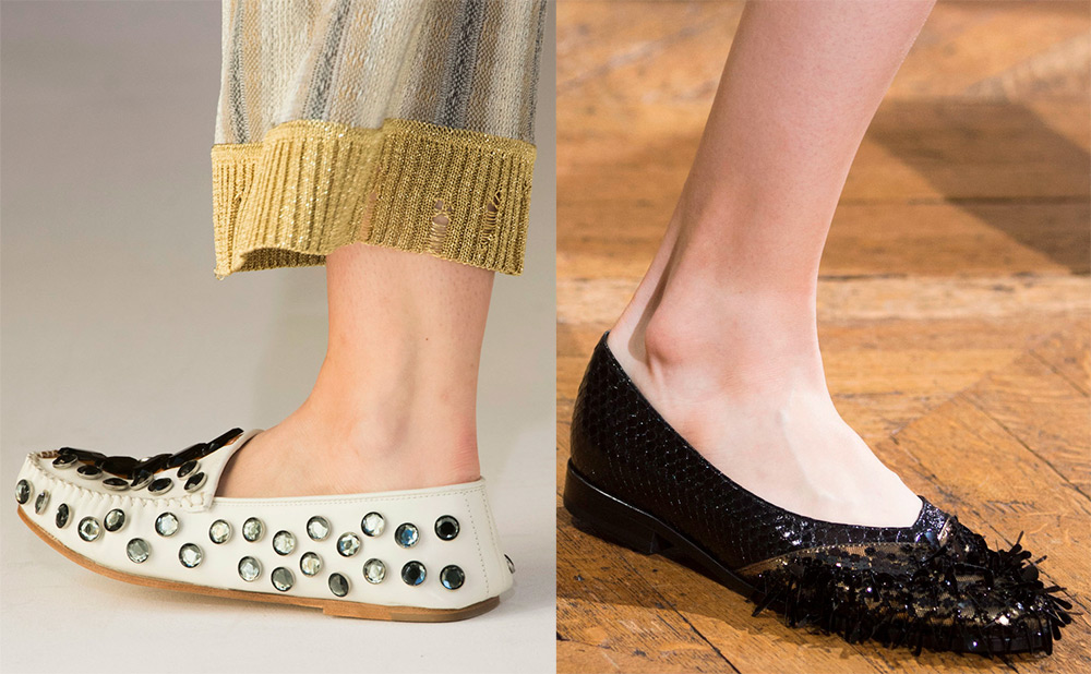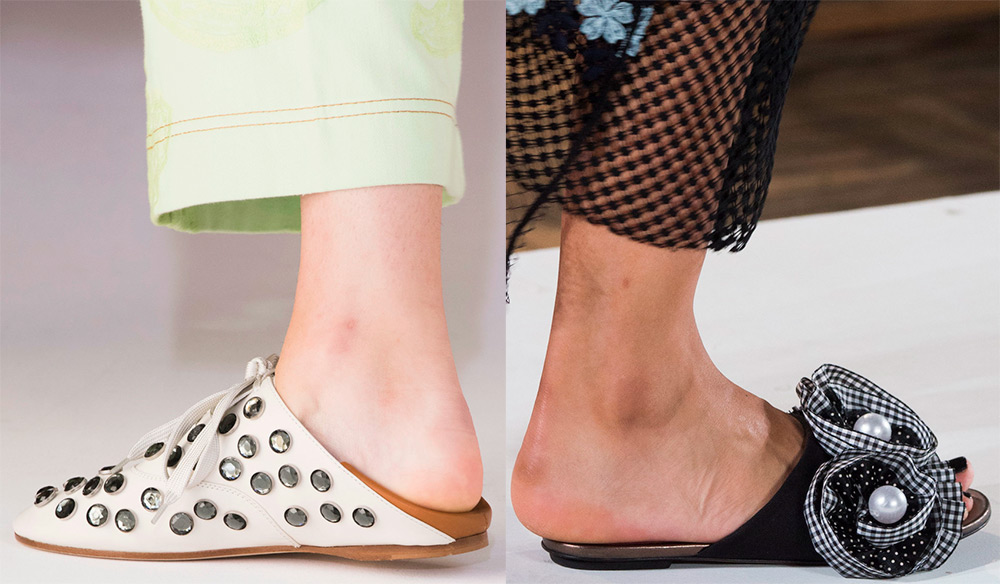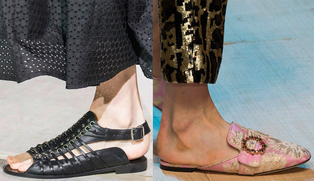 Une grande variété de chaussures sans talons et même sans dos, y compris des tongs lumineuses et des grands-mères confortables, vous permettent de vous détendre et de bouger sans craindre de trébucher. C'est la première des principales tendances de la mode en matière de chaussures.