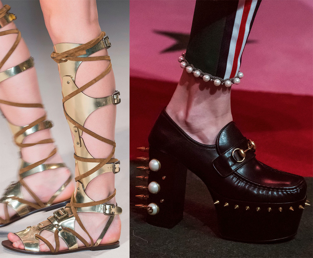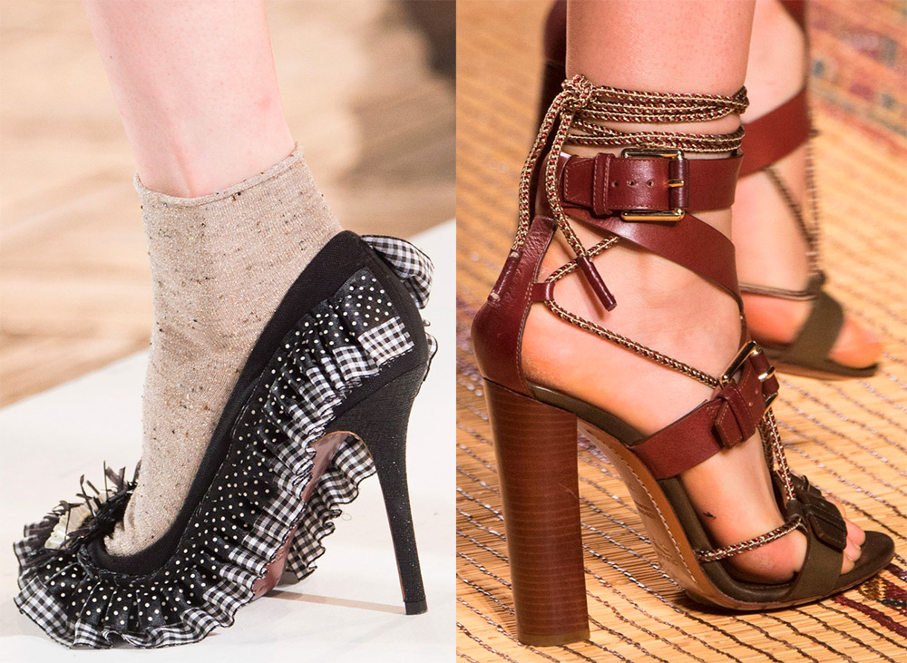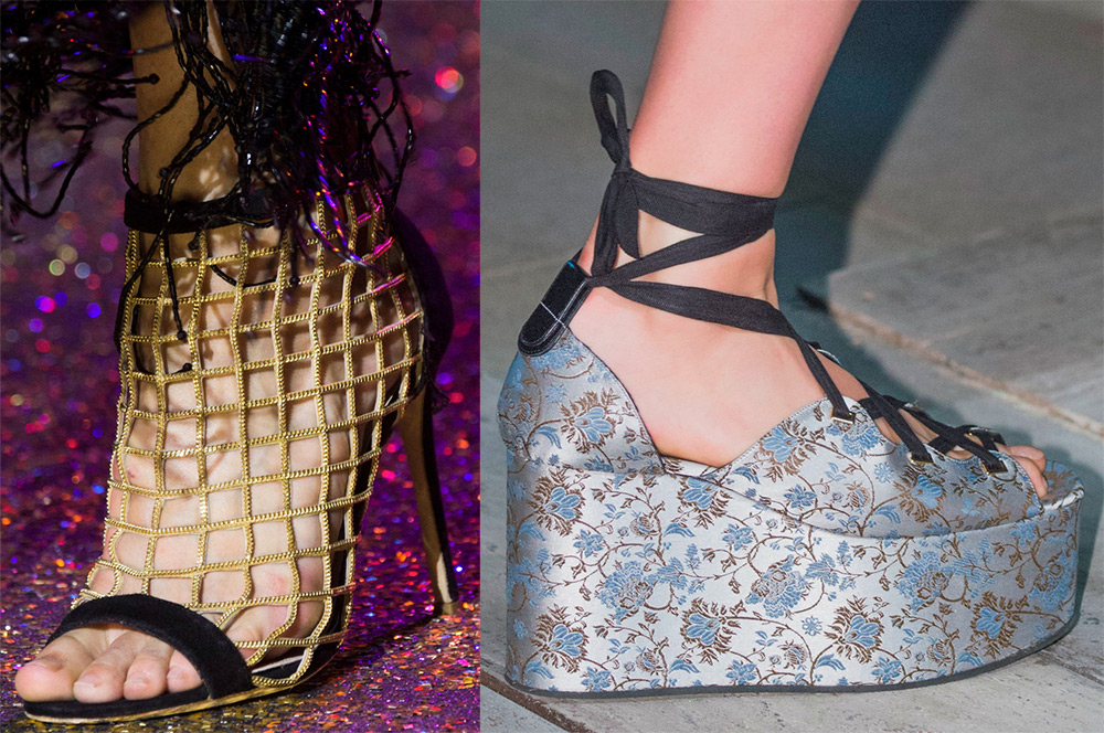 La mousseline légère rivalise avec les chaussures épaisses des collections Coach et Fausto Puglisi. Et ce n'est pas un cas isolé. Il y a beaucoup de créateurs qui utilisent des chaussures pour donner aux filles un look aussi audacieux.