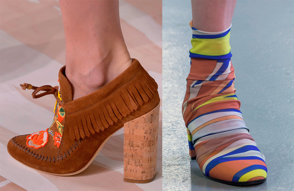 Les fleurs lumineuses en tant qu'imprimé et décor sont populaires non seulement dans les vêtements, mais aussi dans les chaussures. La même chose peut être dite pour la bande.Les imprimés léopard et serpent occupent leur place dans la parure des chaussures pour femmes. La peau de reptile est présente dans les collections de Balmain, Erdem, Tod's. Il n'y a pas seulement des nuances naturelles de la famille des reptiles, mais aussi des couleurs inhabituelles.
