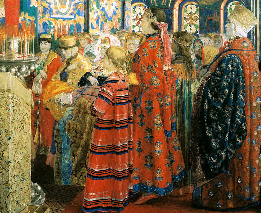 Moscovite Rus a poursuivi les traditions de Kievan Rus non seulement dans les domaines politique et religieux, ou dans le domaine de l'art - toutes les mêmes églises en pierre blanche avec des dômes, la peinture d'icônes, mais aussi dans les vêtements.