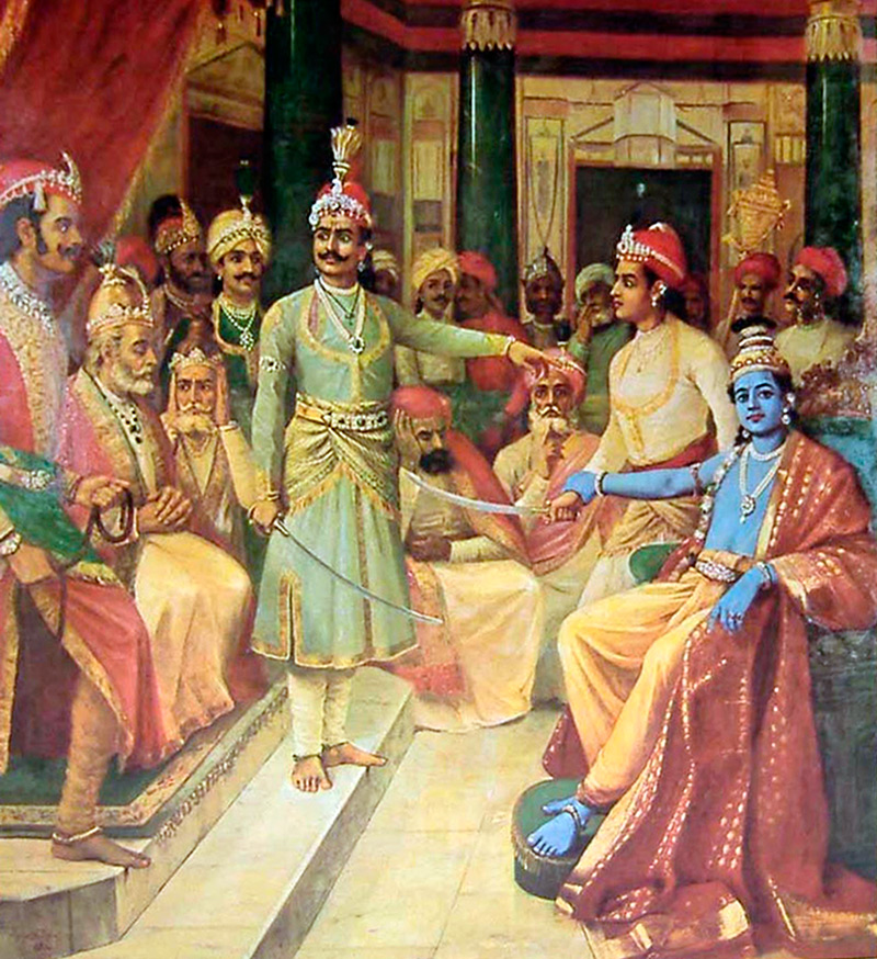 Sri Krishna comme messagerLe tissu principal de l'Inde ancienne était le coton. L'Inde est devenue la patrie de ce tissu et vend du coton à l'étranger depuis l'Antiquité. D'abord vers la Grèce antique et la Rome antique, puis vers l'Europe médiévale. V