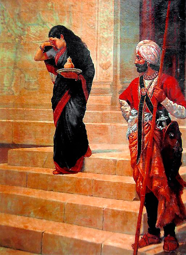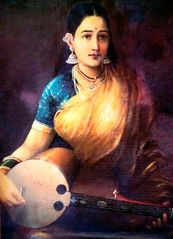Toutes les illustrations ci-dessous sont également une gracieuseté de cet artiste. Raja Ravi Varma a combiné la technique académique européenne avec des sujets de la mythologie indienne dans sa peinture.L'Inde est une terre de nombreuses cultures. Ancien, riche et sans aucun doute lumineux. Et le costume historique de l'Inde est également diversifié.