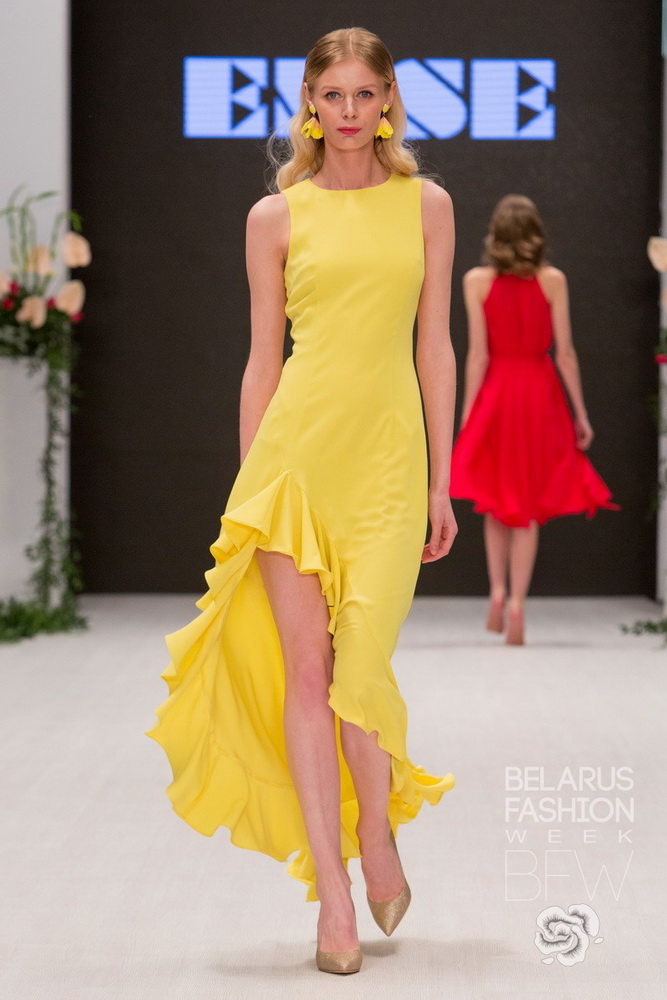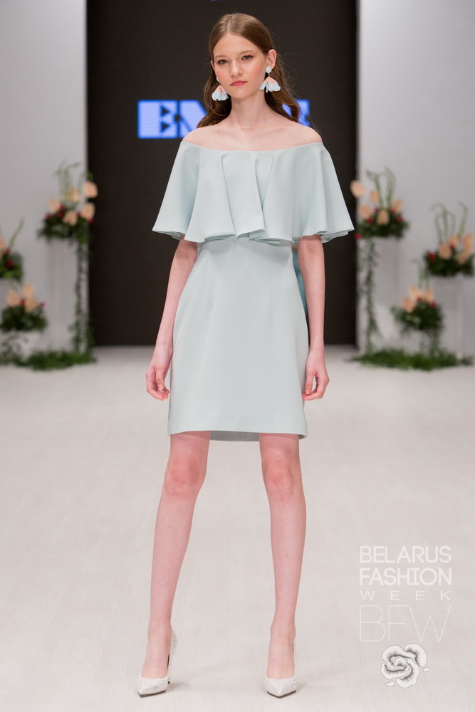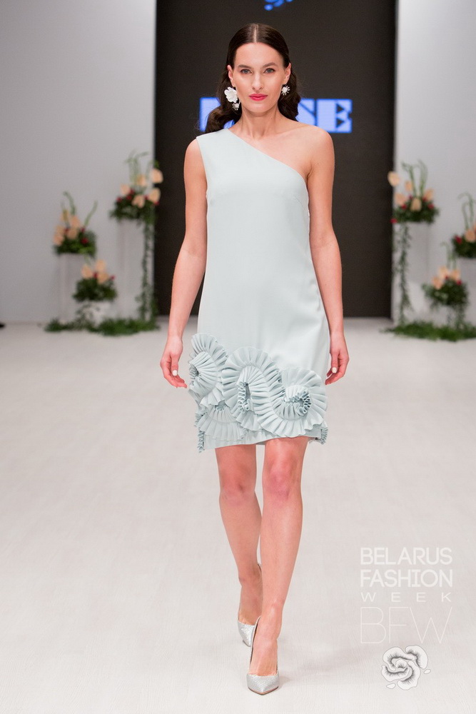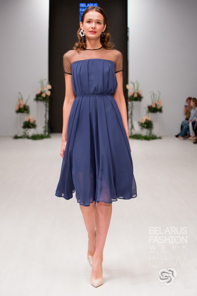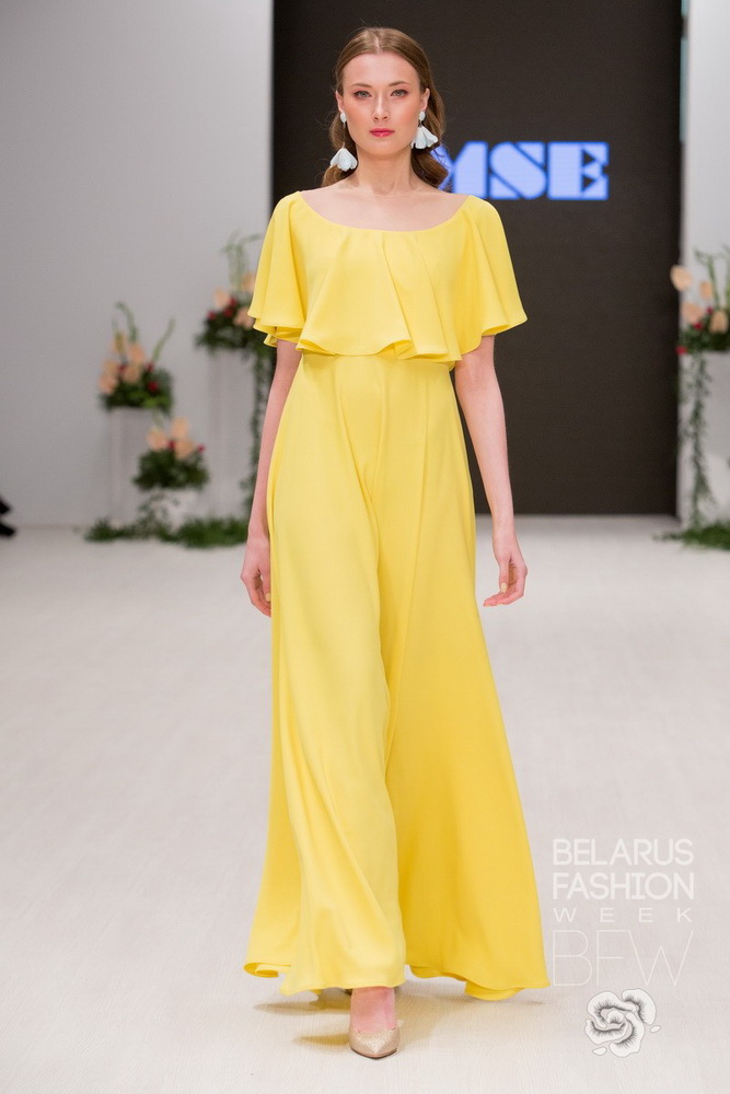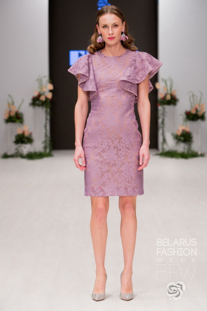 Semaine de la mode biélorusse automne-hiver 2025-2026, des robes en tissu fin avec une jupe volante sans cadre ont été présentées. Les couleurs sont vives, lilas intense, jaune brillant, rouge feu.