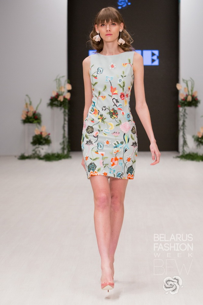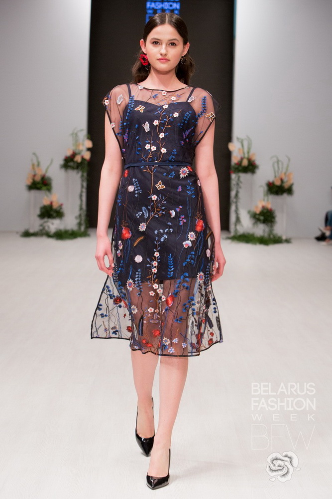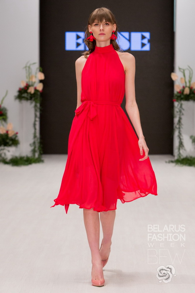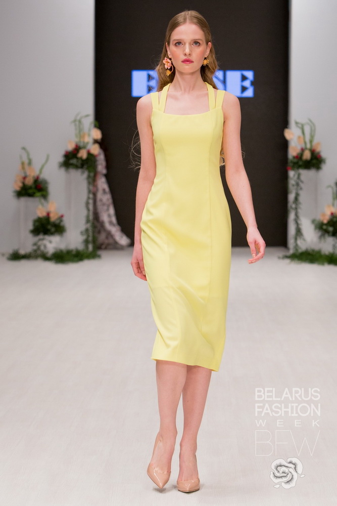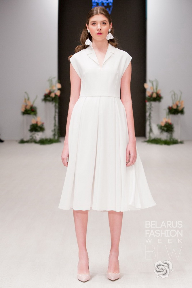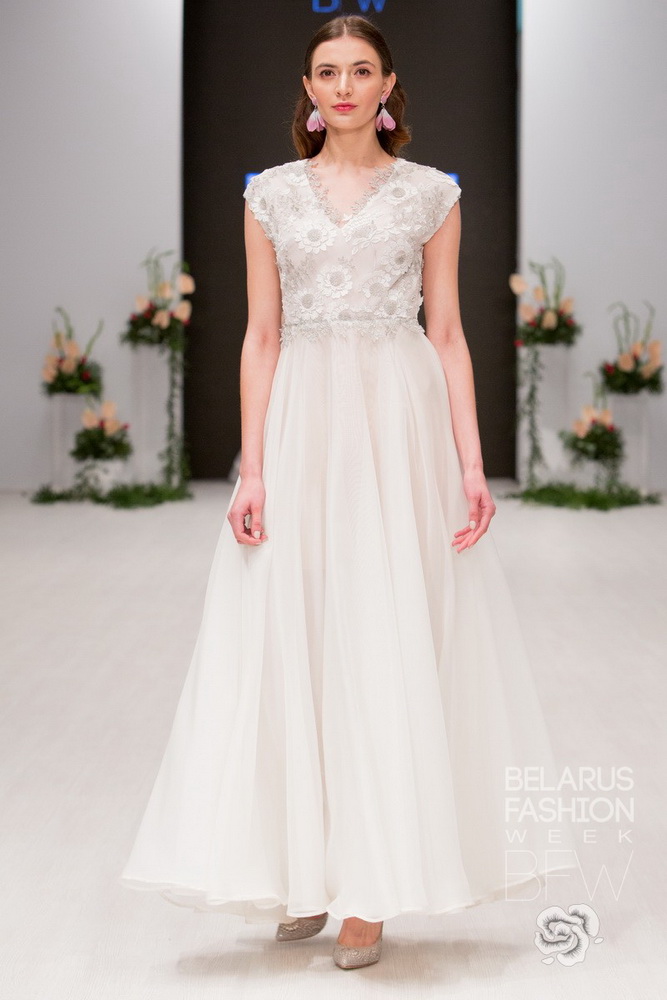 Semaine de la mode biélorusse automne-hiver 2025-2026, des robes en tissu fin avec une jupe volante sans cadre ont été présentées. Les couleurs sont vives, lilas intense, jaune brillant, rouge feu.
