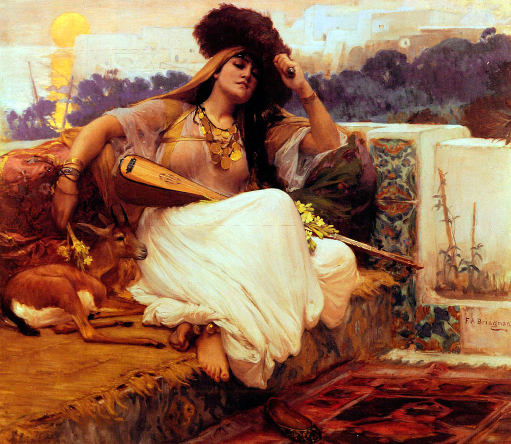 Frédéric Arthur Bridgeman (1847-1928)Toujours dans les pays musulmans, les femmes peuvent porter un voile tel qu'un tchador. Le voile recouvre complètement la femme de la tête aux pieds, mais le visage peut rester ouvert dans certains cas. Le mot voile lui-même, ainsi que le voile, est d'origine persane. Et traduit du persan, cela signifie tente.