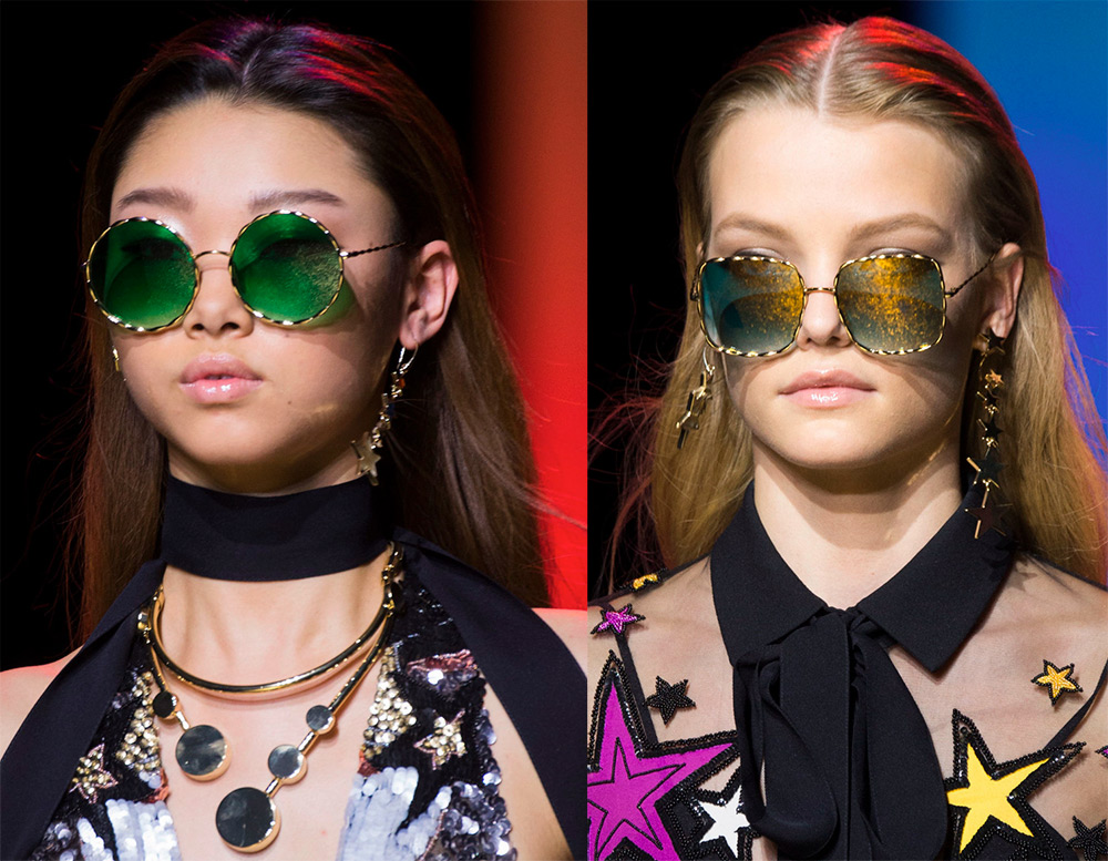 Des lunettes insolites aux formes complexes peuvent être vues dans la collection Jeremy Scott, tandis que les modèles au décor le plus luxueux ont été préparés par Dolce & Gabbana.