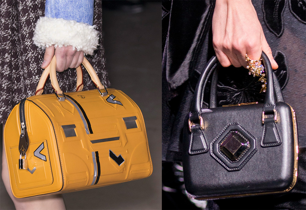 Choisir un sac en forme et en taille dans la nouvelle saison ne sera pas difficile. Sur le podium, il y avait une variété de modèles non seulement avec des lignes géométriques claires - rectangulaires, carrées ou trapézoïdales. Dans le sillage de la popularité de la période automne-hiver, il y aura des sacs de forme ronde, des sacs en forme de selle, des sacs de forme ovale ...