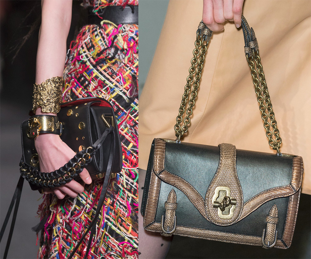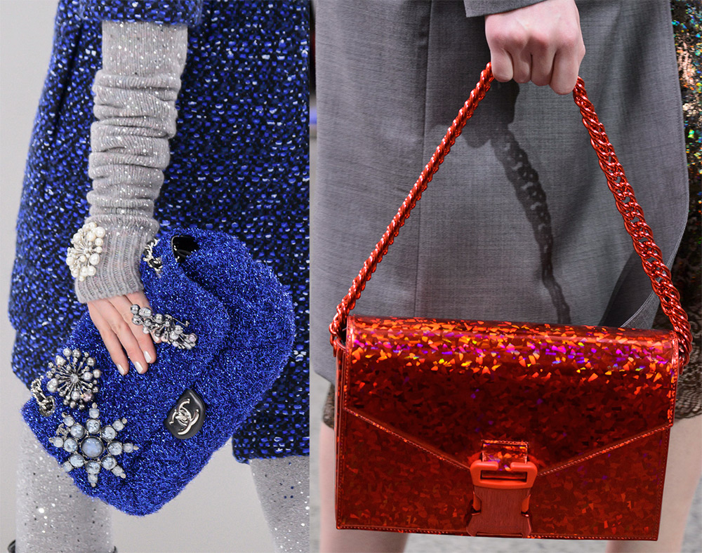 Les sacs décorés de chaînes de différentes longueurs étaient assez courants sur les podiums. Certains d'entre eux ont même reçu des noms, par exemple un sac bracelet dans lequel une chaîne en métal s'enroule autour de la main d'une fille comme un bracelet. Alexander Wang a utilisé des chaînes massives, des rivets et des accessoires métalliques.