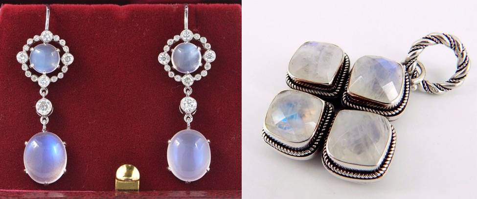 La pierre de lune est difficile à confondre avec une autre. La lueur brumeuse de la lune n'est visible que dans une vraie pierre de lune. La plus avantageuse parmi toutes les variétés de pierres de lune est possédée par l'adulaire. On croit même que son éclat grandit avec la croissance de la lune. Une pierre belle et voyante a fière allure en argent.
