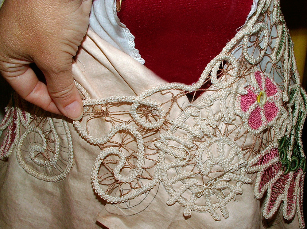 Selon les découvertes historiques, la dentelle de dentelle était principalement utilisée pour la décoration de la maison. Dans la tenue nationale de Roumanie, la technique du point de croix prévalait,