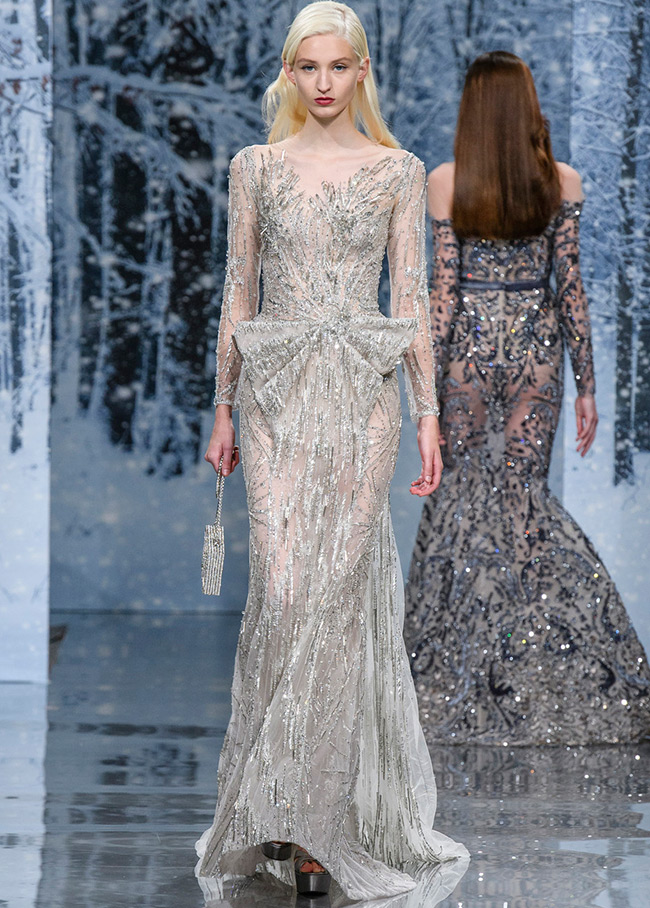 Toutes les robes sont tirées de la même collection automne-hiver 2025-2026 du designer Ziad Nakad, et ce n'est qu'une partie de la collection ! La collection complète est très riche en robes luxueuses, mais toutes les tenues ne conviennent pas à l'image de la reine des neiges. Si vous voulez devenir une beauté de glace pour le Nouvel An ou toute autre célébration, il est préférable de choisir des robes dans les tons argent, bleu et bleu, décorées de strass, de flocons de neige et d'étoiles.