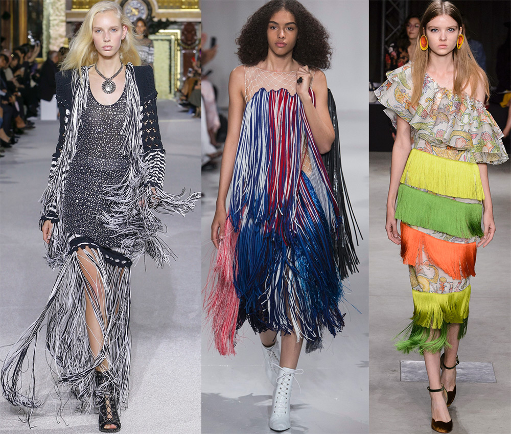 Les franges peuvent être différentes: longues et courtes, ornant l'ourlet des robes ou des détails individuels, ou elles peuvent être utilisées comme matériau principal pour coudre une robe.