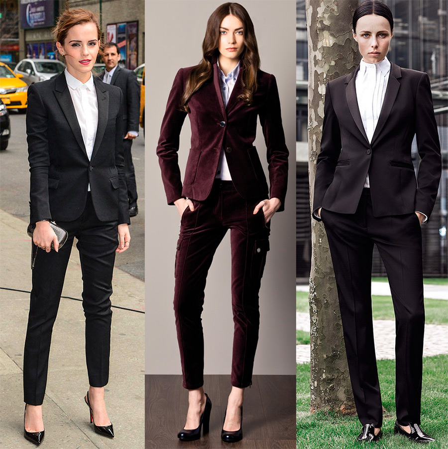 robes de soirée, mais ce ne sont pas les seules tenues pour la célébration. Le smoking a depuis longtemps cessé de faire partie d'une image purement masculine, les femmes à la mode portent de plus en plus de smokings féminins pour les vacances, les occasions spéciales et lorsqu'elles entrent sur le tapis rouge.