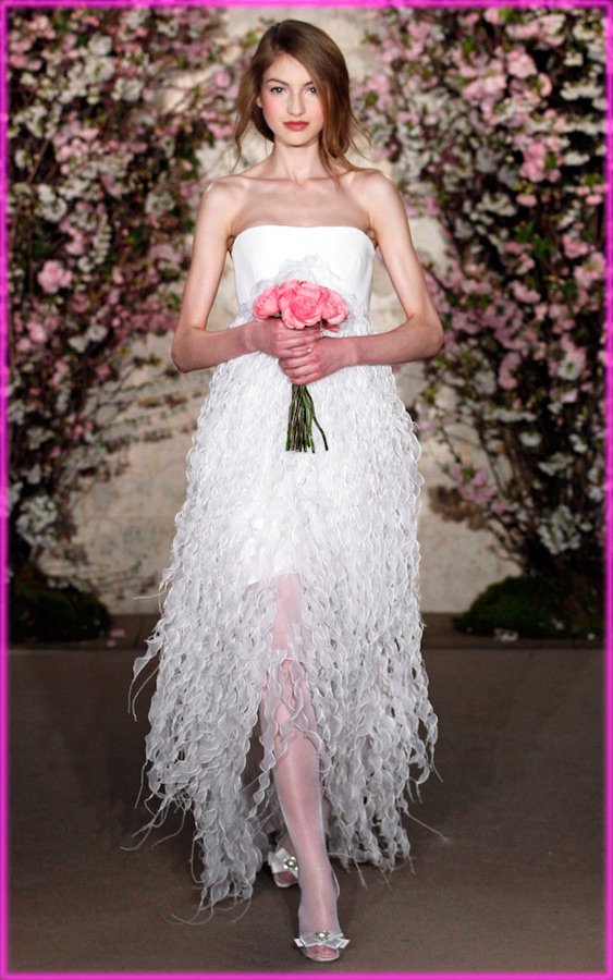 Des collections très insolites de robes de mariée sont désormais disponibles, certains créateurs créent des collections où la couleur noire prévaut. Il est tout à fait possible que quelqu'un veuille assister à son mariage dans une robe en dentelle noire, mais moi et beaucoup d'autres aimons la couleur blanche familière, symbolisant la pureté et l'innocence. Regardez les robes de mariée d'Oscar de la Renta, elles font une telle impression - céleste - pureté angélique. Je pense que chaque fille pourra choisir une robe à son goût dans cette merveilleuse collection.