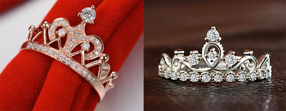 Une bague de fiançailles n'a pas besoin d'être juste ronde et lisse. Si vous voulez plus de beauté, d'originalité et de luxe, les bijoux couronne sont le meilleur choix. Si vous ne trouvez pas d'option appropriée en vente, vous pouvez toujours contacter des bijoutiers, où vous pourrez développer conjointement un modèle 3D en tenant compte de tous vos souhaits et réaliser une bague dans n'importe quel métal.