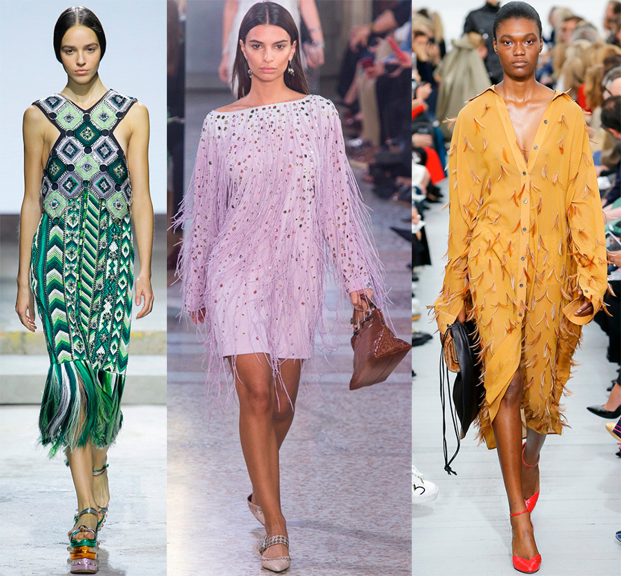 Andrew Gn, Alexis Mabille, Badgley MischkaRegarde avec des paillettes, des rivets et d'autres éléments réfléchissants. Ces éléments décoratifs doivent également être mis en valeur. Pour créer de l'éclat et de la brillance, les filles savent que des paillettes, des œillets, des strass et d'autres éléments réfléchissants sont nécessaires. Comment les concepteurs les ont-ils utilisés ? Regardez dans les collections de Balmain, Bottega Veneta, Dolce & Gabbana, Oscar de la Rentа, Christian Dior...
