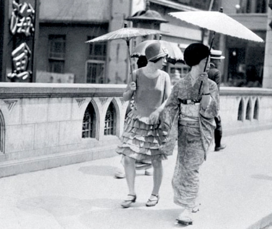 Avec la diffusion d'Internet, on parle beaucoup de liberté dans la mode, de mondialisation et de brouillage des frontières. En effet, l'effacement des frontières et des traditions nationales est observé depuis plus de 100 ans. Par exemple, regardons des images de filles japonaises dans des photographies des années 1920.