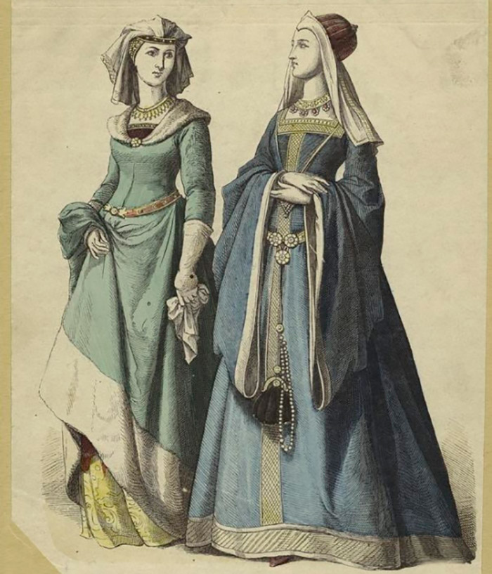Mais, en même temps, les robes de mariée du Moyen Âge se distinguaient de celles de tous les jours en ce qu'elles étaient cousues à partir des tissus les plus chers (velours, brocart) et étaient brodées de fils d'or et de pierres précieuses. Ils étaient donc très lourds. Ainsi, la comtesse de Flandre Margret, qui, comme Sophia Golshanskaya, s'est mariée au XVe siècle, a été portée à l'autel, car sa robe était si lourde qu'elle ne pouvait même pas bouger.