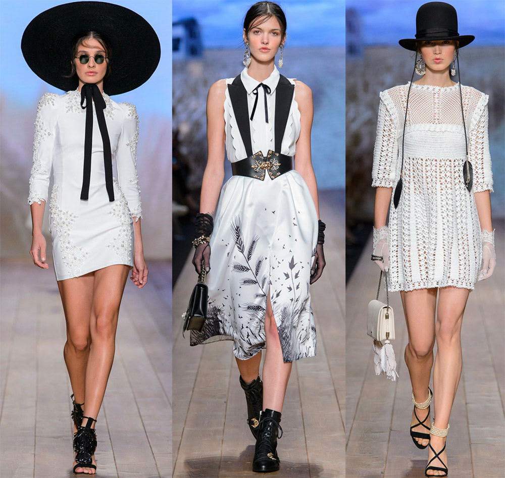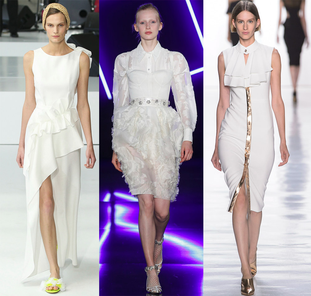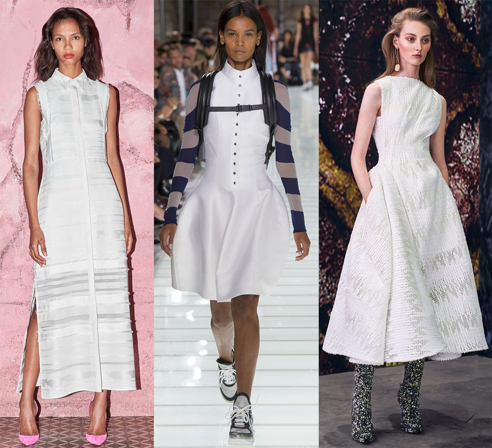 Vous pouvez choisir une tenue blanche dans un style minimaliste. Et si vous aimez le style sportif, découvrez les robes originales de la collection Esteban Cortazar, elles ne sont pas complètement blanches, mais très intéressantes. Les connaisseurs de styles rétro et de looks vintage trouveront de bons modèles chez Alessandra Rich. La dentelle et le plastique font bon ménage dans les robes Calvin Klein. On trouve souvent des looks de style écolière dans les collections 2026, ce qui signifie que vous n'avez pas à avoir peur des robes à col.