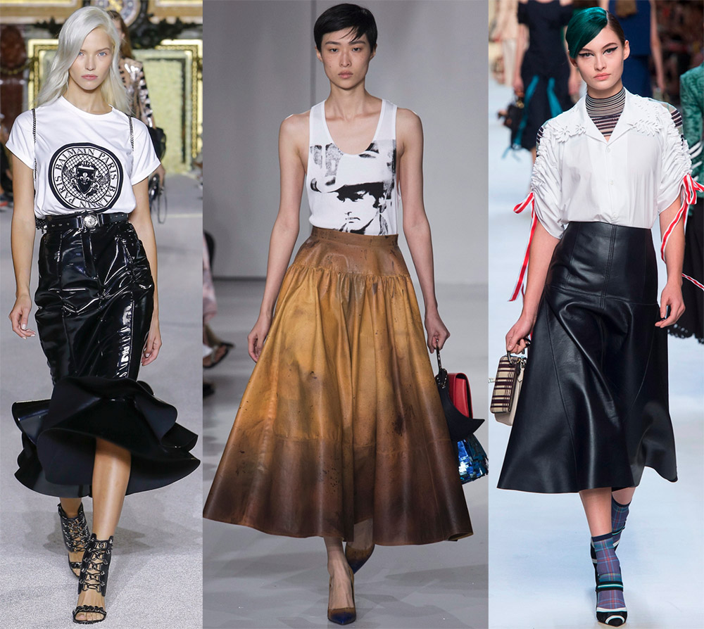 Sur les podiums, on trouvait souvent des jupes à taille haute et à large ceinture. Des ceintures, des ceintures, des corsets ont été trouvés comme accessoires. Les créateurs n'oublient pas les modèles portefeuille, jupe tulipe, ballon et, bien sûr, jupe crayon et trapèze restent avec nous.
