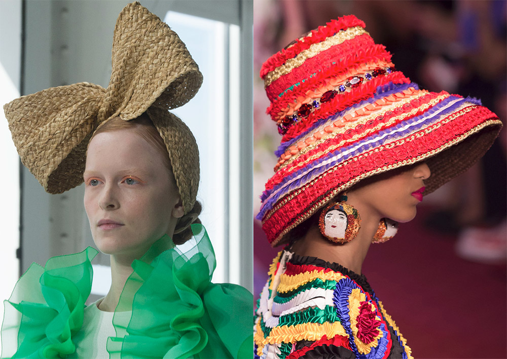 La plupart des créateurs proposent des choses pratiques, et dans certaines collections, vous pouvez trouver des chapeaux très originaux qui ne protégeront pas du soleil, mais peuvent ajouter un zeste lumineux à notre image. De tels accessoires peuvent être vus chez Moschino.