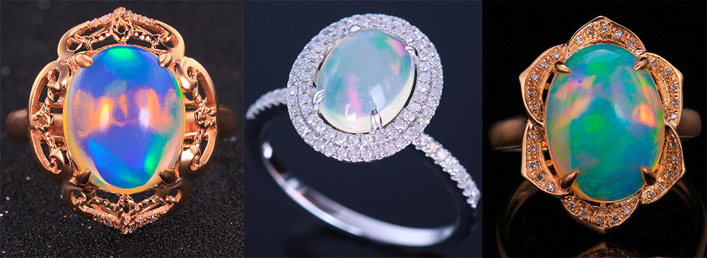 L'opale a une faible dureté, mais il est impossible d'ignorer la beauté de l'effet de couleur. Pour les bijoux, le facteur par lequel une pierre est jugée est le niveau d'opalescence. Les opales nobles sont utilisées en bijouterie. La pierre n'est pas taillée, car l'opalescence ne peut pas être renforcée par la taille, elle est donc traitée sous la forme d'un cabochon.