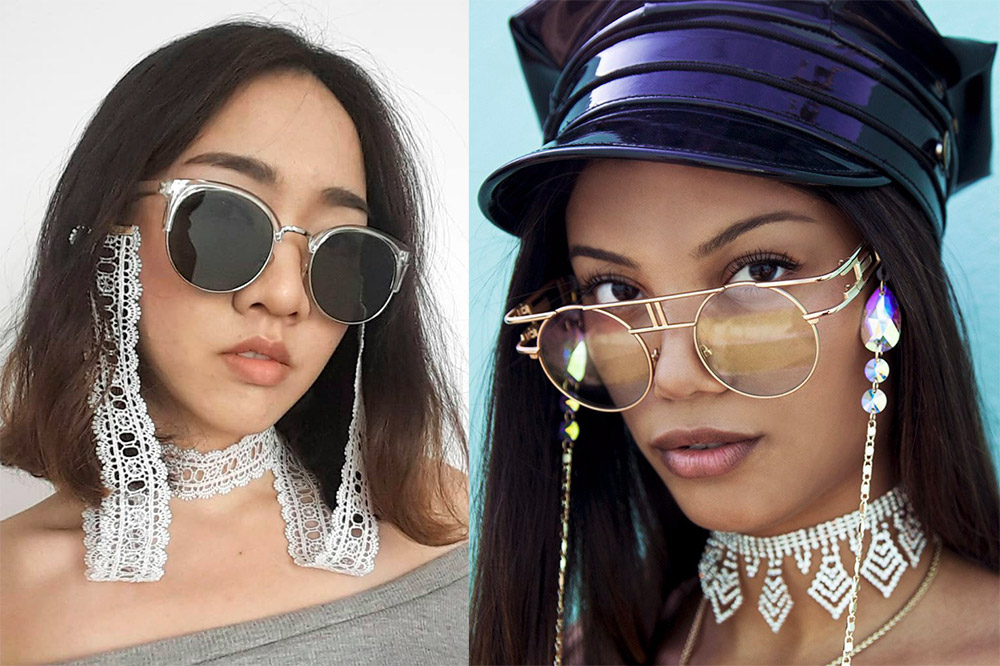 Cette tendance était auparavant populaire et n'est pas perçue positivement par tout le monde. Mais n'ayez pas peur d'expérimenter avec le style. Découvrez des images réussies de célébrités et de filles ordinaires sur Instagram, puis commencez par les options les plus modestes. Achetez un modèle de lunettes avec de petits trous dans les branches et trouvez une chaîne adaptée. Si vous ne l'aimez pas, la chaîne peut toujours être retirée.