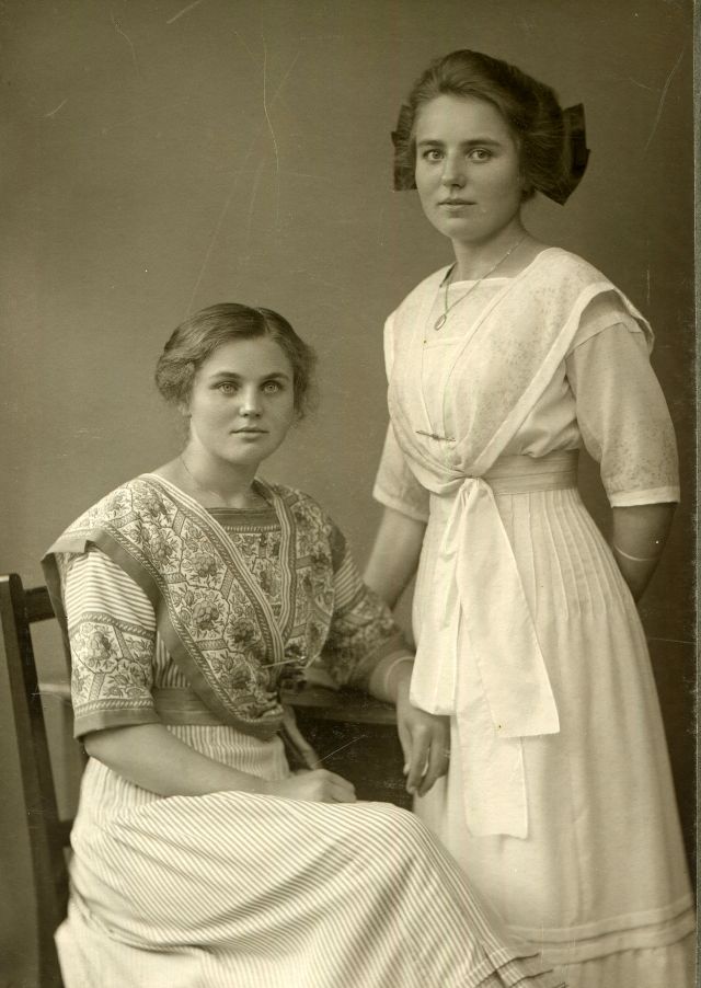 À cette époque, les femmes ne connaissaient pas encore la tendance douteuse de la mode du bronzage et essayaient de garder leur peau blanche. Les filles évitaient le soleil et prenaient en même temps soin de leurs cheveux, donc à cette époque les coiffures étaient encore très féminines et romantiques.
