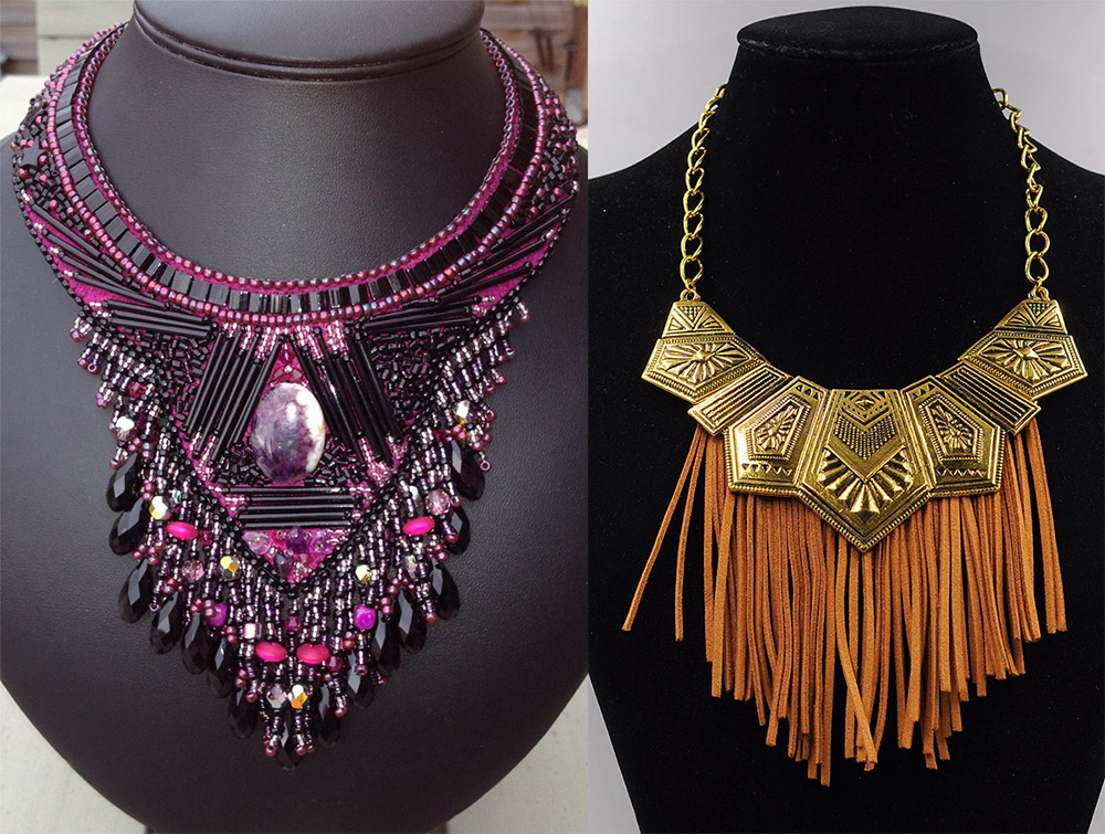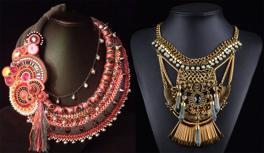 Il existe des plastrons uniques dans le style de diverses cultures ethniques. Beaucoup de filles ne se privent pas du plaisir d'acheter de tels colliers stylisés à l'ancienne avec des pointes, des plaques géométriques, des chaînes, des coquillages ou des plumes.