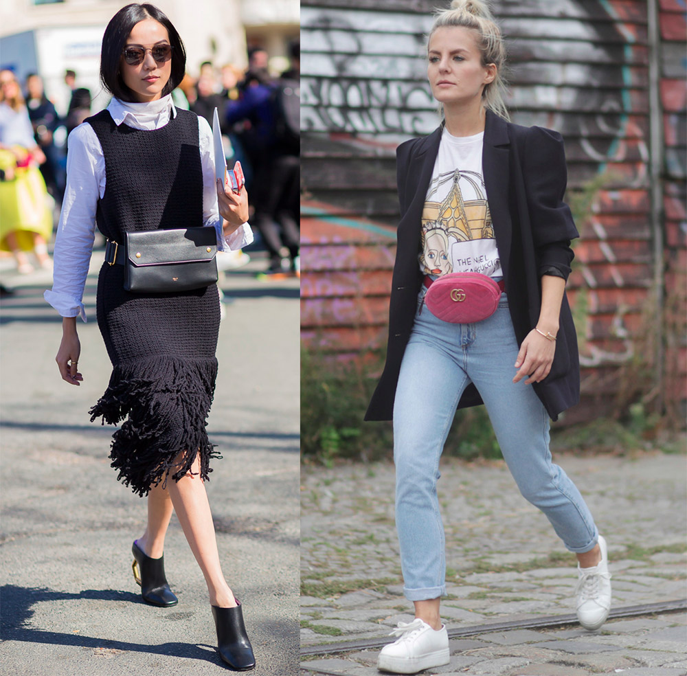 Si vous vous concentrez sur la mode de rue des grandes villes, les sacs ceinture peuvent être portés avec n'importe quel type de vêtements à tout moment de l'année. Quelqu'un choisit une large ceinture en cuir avec un sac sur une chemise, d'autres filles portent un sac banane avec une robe et en hiver - avec un manteau de fourrure moelleux ou une doudoune. En mettant le sac par-dessus la robe, vous pouvez resserrer la ceinture, mais vous ne devez pas serrer la ceinture avec un manteau de fourrure, et vous devrez alors faire attention à garder le sac en place.