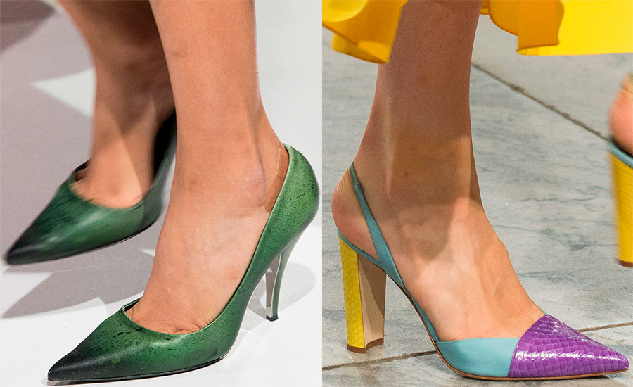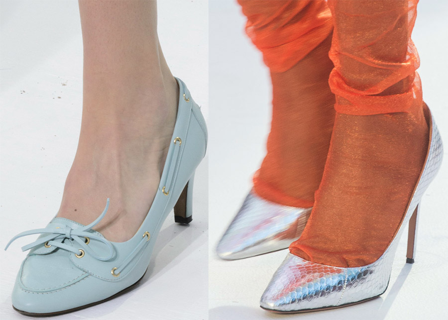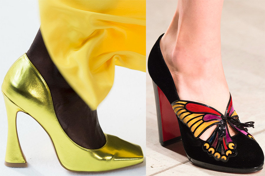 Oscar de la Renta et Ralph Russo 2. Talon transparent dans une variété de formes. Le PVC et d'autres types de plastique remplacent la fourrure et le cuir naturels. Certaines marques soulignent que leurs plastiques sont issus de déchets recyclés, protégeant ainsi la nature pour la postérité.