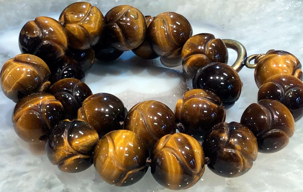 Dans les colliers, les perles peuvent être rondes ou lamellaires. Dans le même temps, le maître ne donne pas toujours la forme correcte, les colliers aux contours irréguliers sont magnifiques. Les bracelets en oeil de tigre ont fière allure.