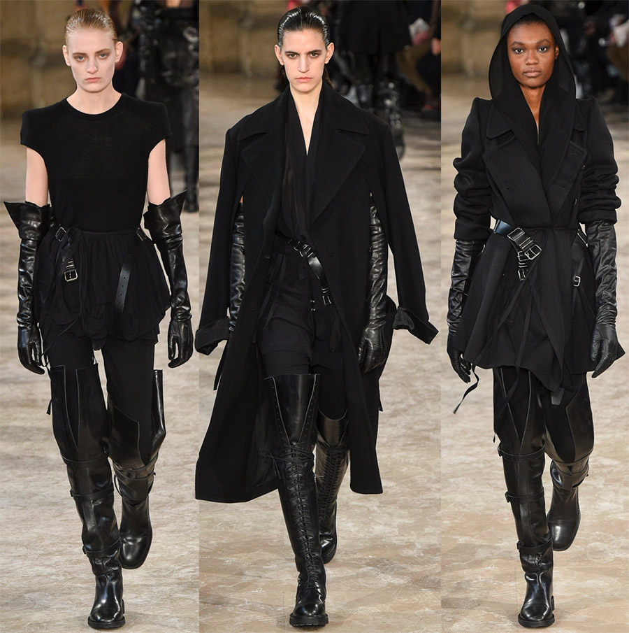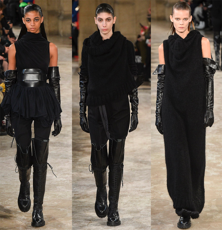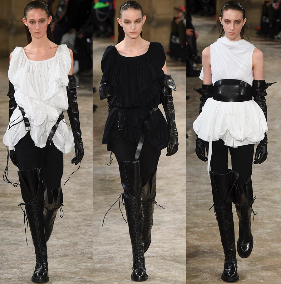 2. Gants longs et hauts. Tous les modèles portent des gants au-dessus du coude. Ce n'est pas une nouvelle tendance, il y avait de tels gants avant, mais les gants Ann Demeulemeester sont à la fois très gothiques et luxueux.