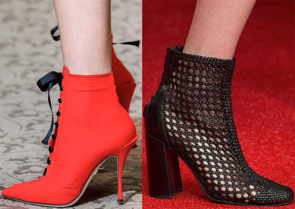 peut ressembler à la fois à des sandales et à des bottines. Dans de nombreuses collections, vous pouvez trouver des bottines élégantes et luxueuses pour un automne au chaud.