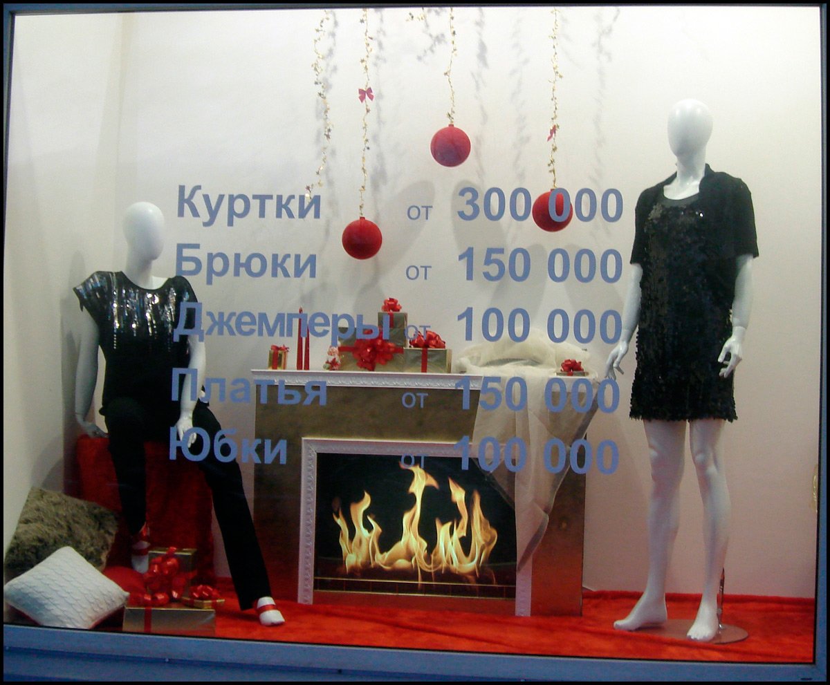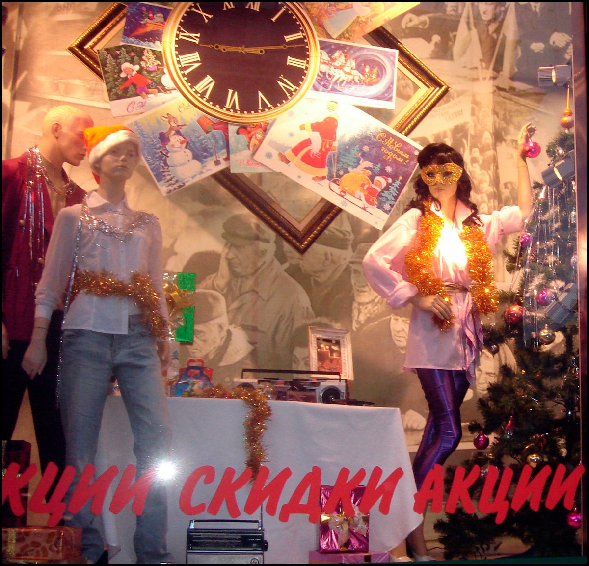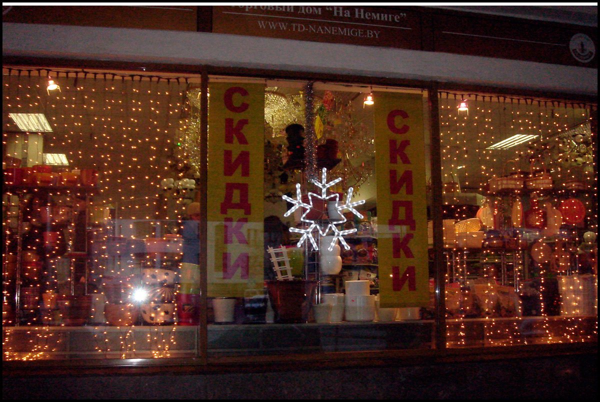 Il s'est avéré qu'il existe un poste de designer à temps plein dans les grands magasins de Minsk, qui s'occupe de la conception des fenêtres et des intérieurs des magasins eux-mêmes. Contactez les concepteurs, par exemple, le même créateurs de modequi participent périodiquement aux défilés de mode de Minsk ne sont pas acceptés, les magasins se débrouillent seuls. Et, malheureusement, cette année, il s'est avéré peu brillant - arbres de Noël, guirlandes, flocons de neige et bonhommes de neige. Il n'y a pas tellement de vitrines solides, décorées dans le même style, originales.