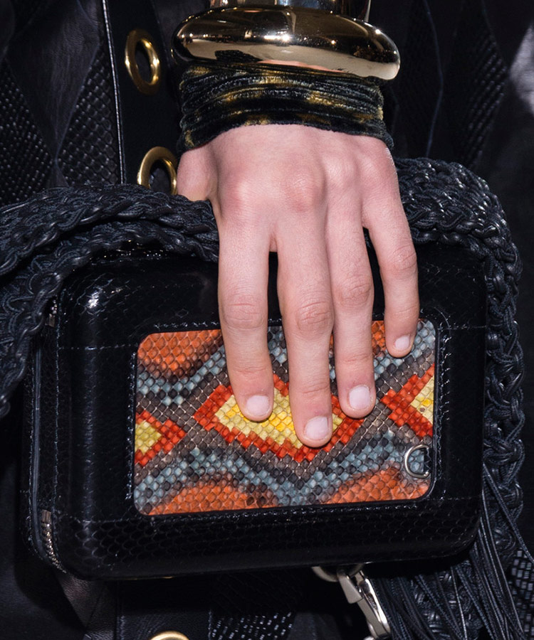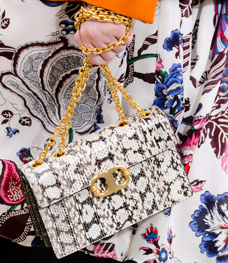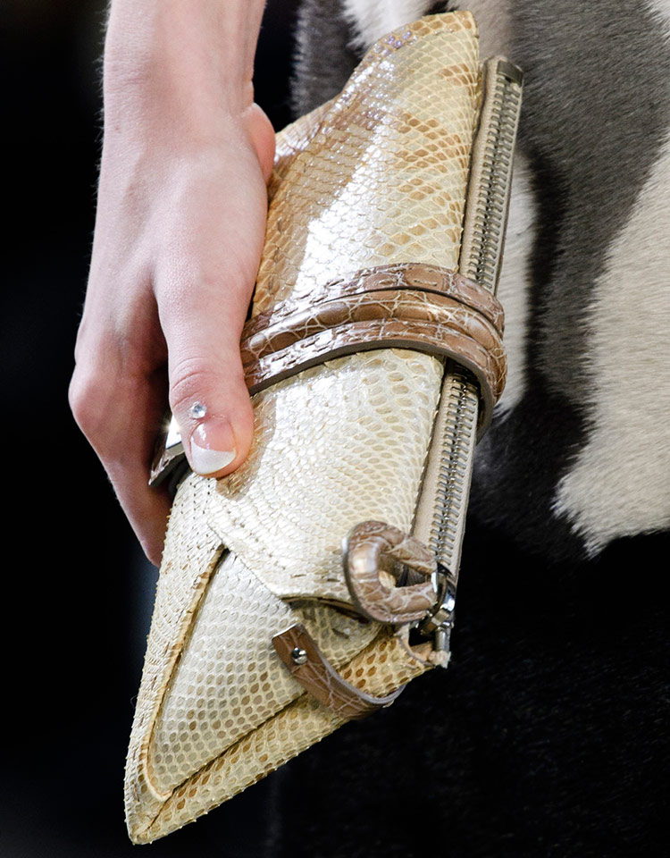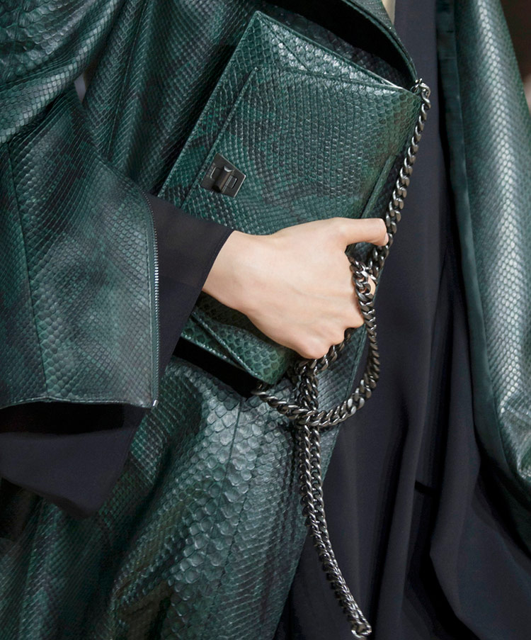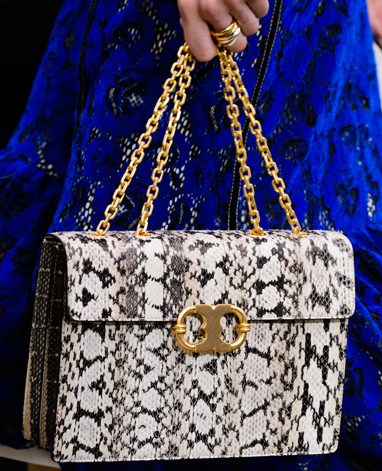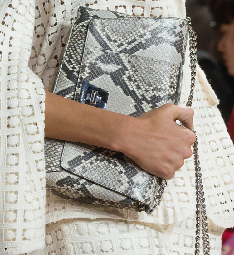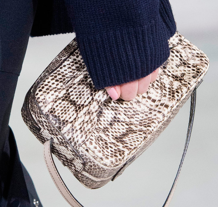 BlumarineDans les collections des Fashion Weeks automne-hiver 2025-2026, on trouve de nombreux sacs en peau de serpent ou avec un embossage serpent. Aujourd'hui, on peut s'offrir des accessoires dans n'importe quel matériau et ce ne sera pas honteux, comme il y a 10 ans, lorsque les choses en similicuir étaient un indicateur de pauvreté ou de mauvais goût. Grâce à l'idée de protéger les animaux, les matières synthétiques ont pris place dans les collections de grandes marques au même titre que le cuir véritable et la fourrure.