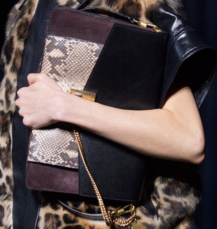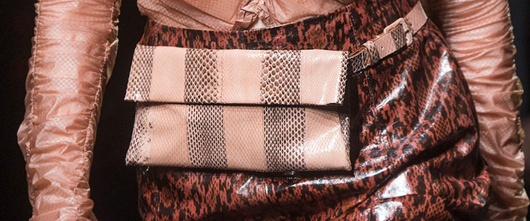 Mélanger les textures et les matières. Les sacs ont l'air originaux où la peau de serpent est combinée avec une peau de crocodile ou ordinaire. Dans certains cas, les impressions et les textures sont mélangées en même temps. Par exemple, il y a des sacs où