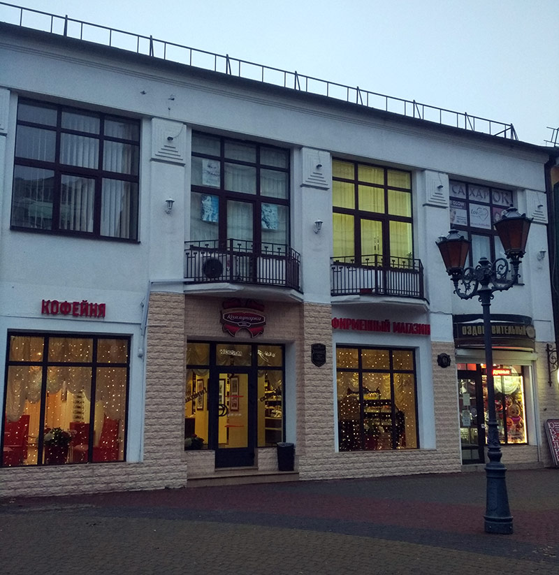 Et quand vous en avez marre du shopping, vous pouvez prendre un café avec un dessert ou une tasse de chocolat chaud au café Kommunarka, également une marque biélorusse, mais déjà chocolatée.
